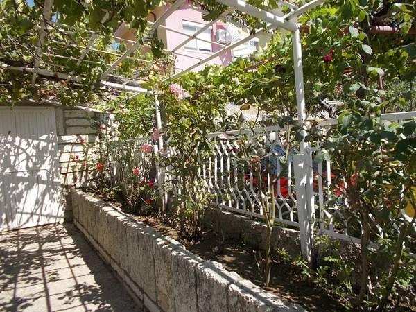 Teren de 460 mp, amenajat cu flori, câțiva pomi fructiferi și zone terasate, ideale pentru grădină sau spațiu de relaxare